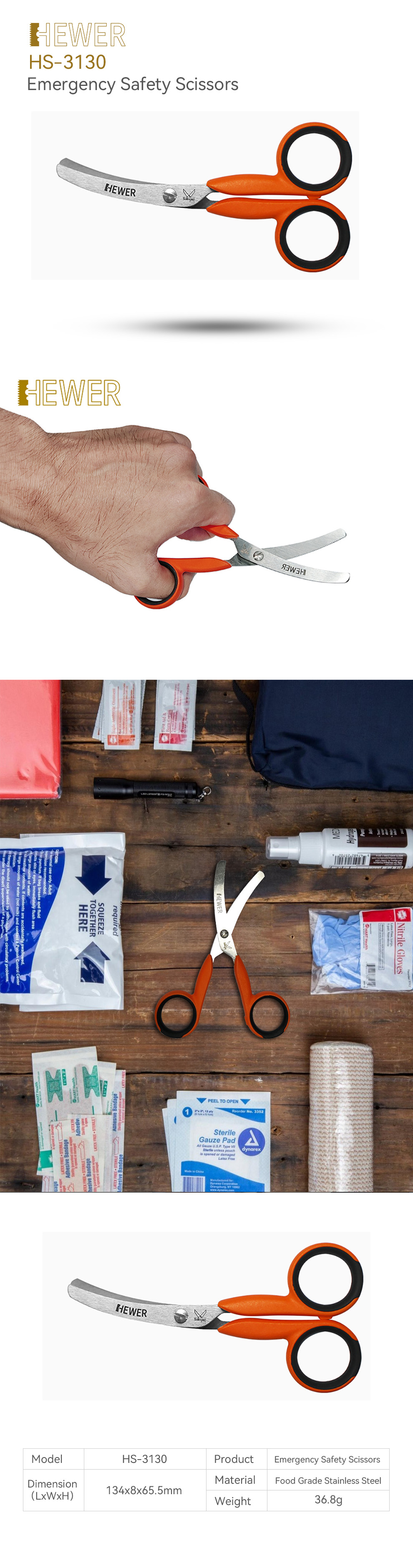 HEWER Food Grade Emergency Safety Scissors HS-3130